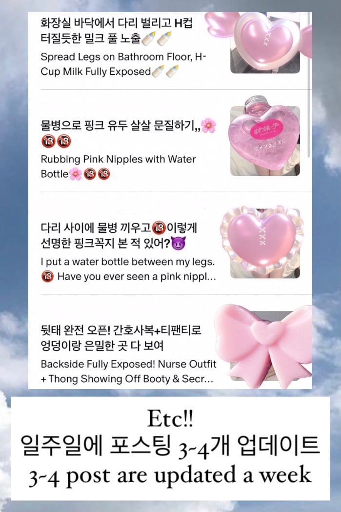 물병으로 핑크꼭지 문질, 간호사복 코스프레+t팬티로 뒷태노출, 화장실 바닥에서 다리 벌리고 노출 etc💗